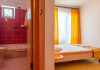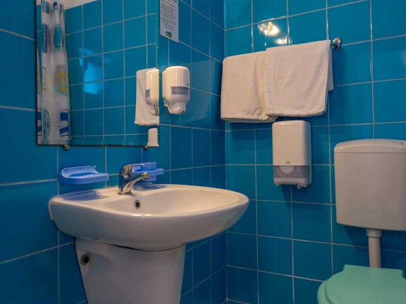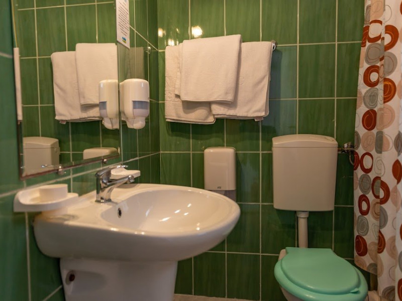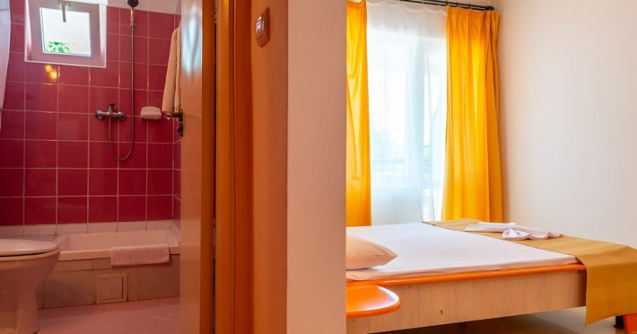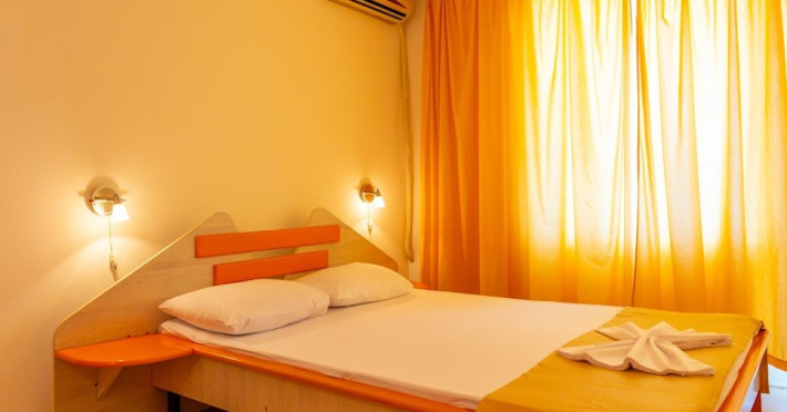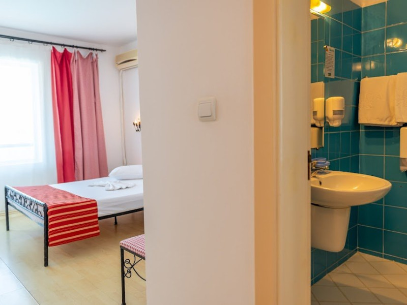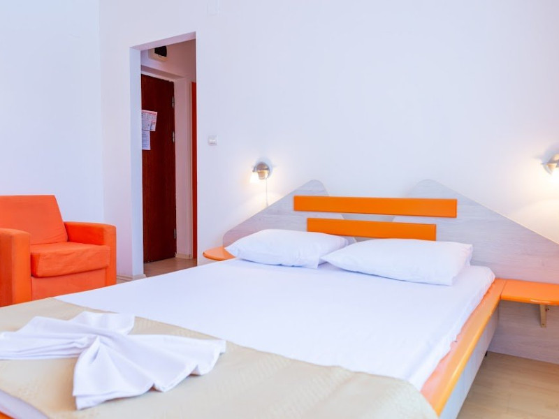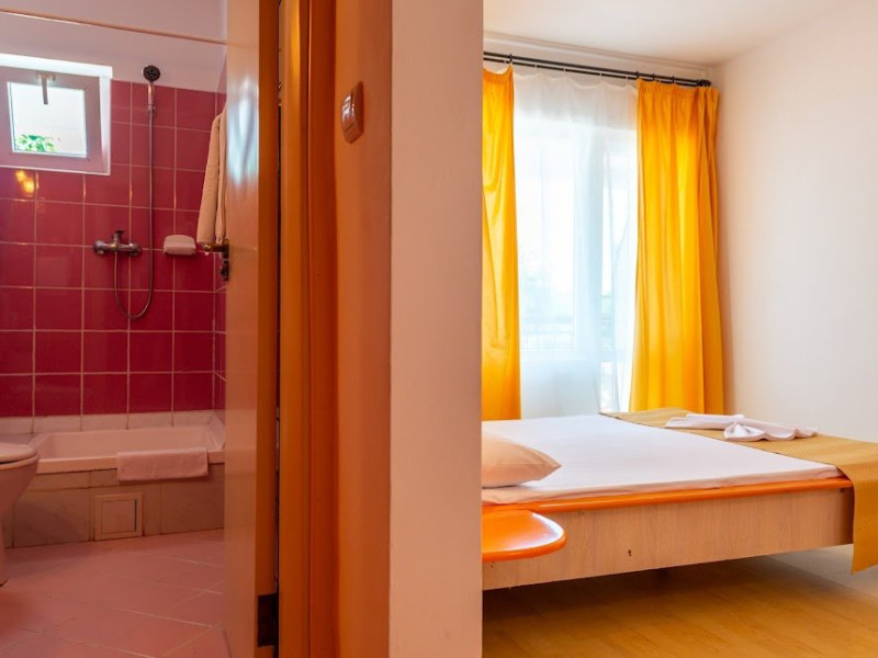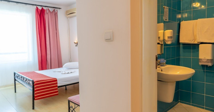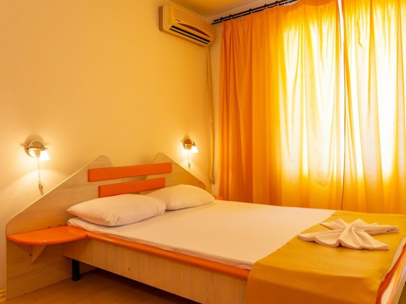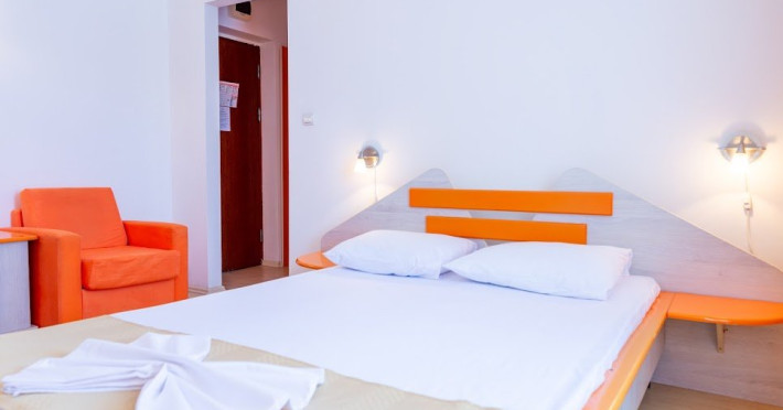 Dotari camere Camera dubla, cu o suprafata de 14 mp, detine pat matrimonial (140x200 cm) sau paturi twin (90x200 cm), baie cu dus, balcon, TV, minibar, AC, internet. Poate acomoda 2 adulti, 2 adulti + 1 copil (0 pana la 17 ani) sau 2 adulti si 2 copii (0 pana la 13 ani). Camera dubla in regim single, cu o suprafata de 14 mp, detine un pat matrimonial sau twin, baie cu dus, balcon, internet, AC, minibar, TV. Poate acomoda 1 adult, 1 adult + 1 copil (0 pana la 13 ani). Apartamentul, cu o suprafata toatala de 32 mp, formata din living cu canapea extensibila si dormitor cu pat matrimonial, baie cu dus, internet, minibar, AC, TV, si balcon. Poate acomoda 2 adulti, 3 adulti + 1 copil (0 pana la 6 ani) sau 2 adulti si 2 copii (0 pana la 13 ani).