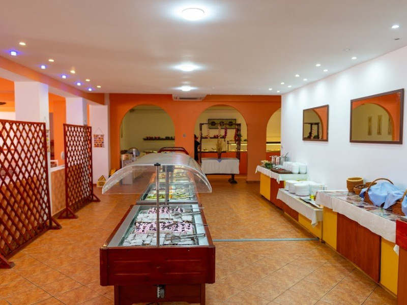CONCEPT ALL INCLUSIVE 08:00 - 10:00 Mic dejun sistem bufet suedez (include diferite tipuri de omleta, branzeturi, mezeluri, legume, dulciuri, racoritoare, ceai, cafea); 11:00 - 12:00 Gustare (produse de patiserie); 13:00 - 15:00 Pranz sistem bufet suedez (include supe, ciorbe, mancare gatita, garnituri, salate, legume, fructe, dulciuri) 17:00 - 18:00 Gustare (produse de patiserie); 18:30 - 20:00 Cina sistem bufet suedez (include mancare gatita, gratar, garnituri, salate, legume, fructe, dulciuri). Orele meselor pot suferii modificari.