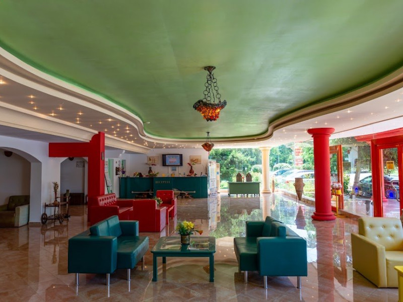 Dotari si servicii Hotel Majestic este clasificat la 3* si are 162 de camere duble si 8 apartamente, piscina exterioara(lungime de 22m si adancime de1.55-1.80m), foisor, gradina de vara, restaurant si terasa, 3 sali de conferinte, loc de joaca pentru copii. Pe terasa se organizeaza spectacole de divertisment. Hotelul nu detine plaja inchiriata, insa turistii au acces la plaja publica sau plaja amenajata (cu umbrele si sezlonguri contra cost). Receptia hotelului pune la dispozitia turistilor cutie de pastrare valori si camera de bagaje. Parcare gratuita in limita disponibilitatii. Hotelul nu accepta animale de companie. Accesul la piscina este gratuit numai pentru turistii hotelului in intervalul orar 09.00 - 18.00.