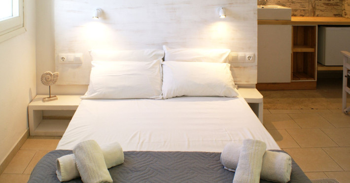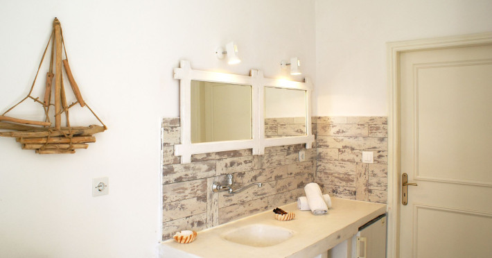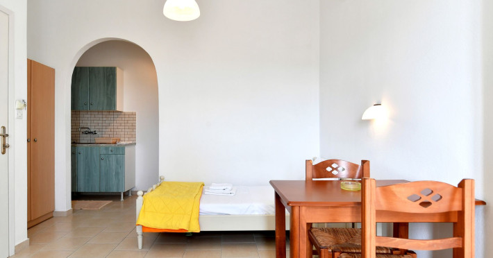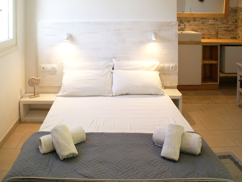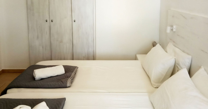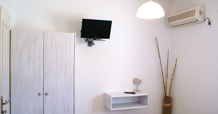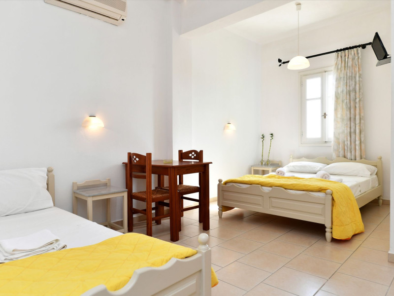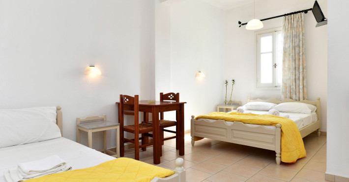 In a pleasant family environment in Naoussa, Paros, only 900m from the seaside, are the situated our rooms, fully furnished and with all modern amenities, individual kitchen, bathroom, TV, air-condition, daily service, individual verandas and parking.