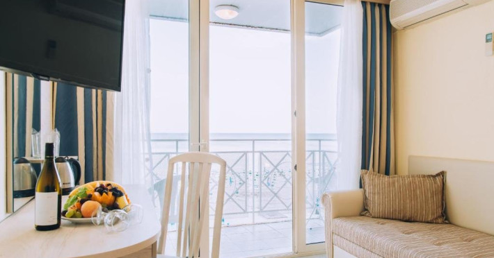 *Hotelul va pune la dispozitia oaspetilor gratuit 2 sezlonguri si 1 umbrela per unitate pe plaja incepand de la al 3-lea rand de umbrele (in functie de disponibilitate). Randurile 1 si 2 sunt taxate si nu sunt incluse in pretul cazarii.