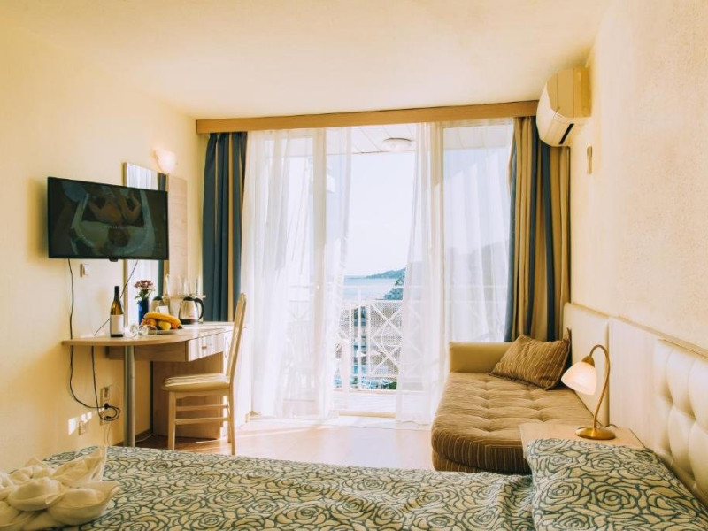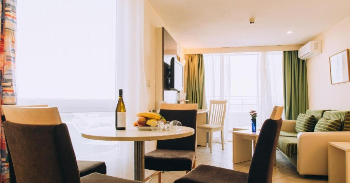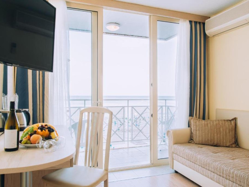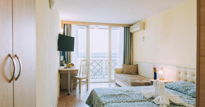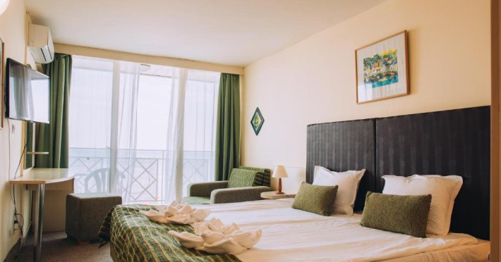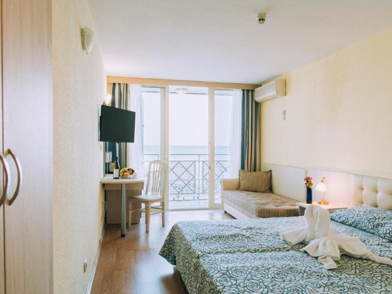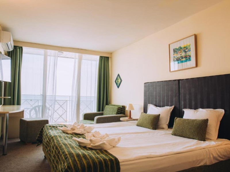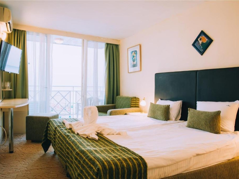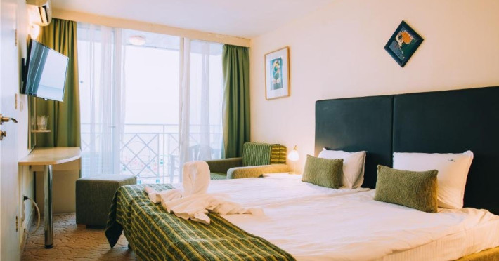 Hotelul Mura are o locatie ideala pe plaja. Strada comerciala din Albena este la 900 de metri de hotel.Oferiti-va o vacanta de neuitat la malul marii rezervand la Hotel Mura 4*. Hotelul de la malul marii este, de asemenea, situat langa rezervatia unica, cu paduri dense - Baltata. Pentru a va face vacanta cu adevarat lipsita de griji, Mura 4* ofera, de asemenea, All Inclusive. Hotelul are camere duble mobilate modern, apartamente mici si mari, cu terase minunate cu vedere la mare sau la rezervatie. Exista doua piscine in aer liber si una interioara, jacuzzi, club pentru copii si loc de joaca. Va puteti bucura de mese tematice cu specialitati bulgaresti si fructe de mare in restaurantul principal al hotelului. Snack barul ofera clatite, vafe, salate, fructe, inghetata si multe altele. Barul din hol serveste bauturi racoritoare. Hotelul Mura 4* este locul ideal pentru o vacanta relaxanta chiar pe plaja! Plaja: langa Rezervatia Naturala Baltata. Bucurati-va de cea mai frumoasa si curata plaja de pe coasta bulgara a Marii Negre, castigatoare a premiului Blue Flag. Fundul marii este plat, cu acces lin. Cazare: Hotel Mura dispune de 170 de camere duble, 10 etaje si 3 lifturi. Ultima renovare a hotelului din 2020. Hotelul dispune de camere duble mobilate modern, apartamente mici si mari, cu terase superbe cu vedere la mare sau rezervatie. DBL 2+1 / 2+2: aprox - 21 mp. Camere confortabile si cu aer conditionat, potrivite pentru familii cu copii, cu vedere la parc. Fiecare camera este dotata cu paturi twin, canapea neextensibila, birou cu scaun, TV LED 32, mini bar, telefon, ceainic electric, uscator de rufe, terasa cu masa si scaune, baie cu dus, uscator de par si oglinda cosmetica. Capacitate maxima din 2 adulti si 2 copii sau 3 adulti si 1 copil. *Camerele care sunt potrivite pentru 2 adulti + 2 copii sunt alocate la etajul 1 si la etajul 2. In aceste camere canapeaua este extensibila. Hotelul dispune de 16 camere cu paturi supraetajate, care sunt situate de la etajele 1 la 4. DBL 2+1 / 2+2 SEA VIEW: aprox- 21 mp. Camere confortabile si cu aer conditionat, potrivite pentru familii cu copii. Fiecare camera este dotata cu paturi twin, canapea neextensibila, birou cu scaun, TV LED 32, mini bar, telefon, ceainic electric, uscator de rufe, terasa cu masa si scaune, baie cu dus, uscator de par si oglinda cosmetica. Capacitate maxima din 2 adulti si 2 copii sau 3 adulti si 1 copil. FAMILY 2+3 SEA VIEW: Consta din 2 camere duble la mare, conectate printr-o usa interconectata. Potrivit pentru familii cu copii. 1-BR APP 2+2: aprox 45 mp. Apartamentele mobilate confortabil cu living (cu o canapea extensibila 140/190) si un dormitor (cu un pat dublu mare) au vedere laterala la mare. Fiecare apartament dispune de mini-bar, seif, set de cafea si ceai, fier si masa de calcat, birou cu scaun, telefon, cablu TV, baie cu cada, uscator de par, oglinda cosmetica. Spatiul este separat cu o usa despartitoare. Doua balcoane cu masa si scaune. Capacitate maxima de 2 adulti si 2 copii. *Pentru cazarea 2 adulti + 2 copii sau 3 adulti + 1 copil in camera DBL nu se vor face reclamatii acceptate in ceea ce priveste confortul si spatiul unitatii. * Set de cafea si ceai in camera - reincarcare zilnica. Patutul de copii este oferit gratuit la cerere prealabila. Hotelul permite cazarea cu animale de companie de pana la 4 kg., cu certificat medical si pasaport contra plata suplimentara de 50 BGN/zi Exista 5 camere la etajul 1 cu vedere la parc - potrivite pentru persoanele cu dizabilitati Despre hotel: receptie 24 de ore, informatii, trezire, apel taxi, oficiu postal, schimb valutar, seif/contra cost/, fitness, biblioteca pe plaja, animatie, piscina exterioara, piscina interioara si jacuzzi (contra cost) , piscina pentru copii, restaurant principal cu Terasa, Lobby Bar, Bar Terasa, Pool Bar. Wi-Fi gratuit in zona receptiei, lobby bar si langa piscina. Serviciu SPA in afara hotelului contra cost: Oaspetii hotelului se pot bucura de trei centre SPA exclusive care ofera o mare varietate de servicii: Centru spa in hotelul Dobrogea Centru Spa in Calimera Ralitsa Superior Centru de spa Elemente in Hotel & Spa Flaming Grand Centru spa Senses in Maritim Paradise blue Hotel