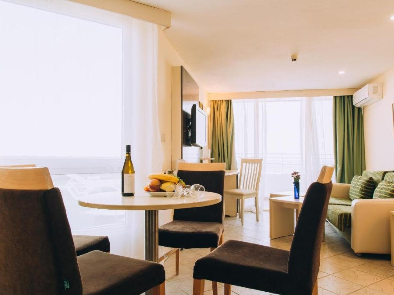 Programul Dine Around: Pentru toti oaspetii, care au rezervat minim 7 nopti in statiunea Albena. Programul este valabil pe tot sezonul estival. Fiecare oaspete primeste 1 pranz gratuit si 1 cina gratuita la unul dintre restaurantele a la carte din Albena, care include 1 salata sau 1 aperitiv, 1 fel principal, 1 desert si un pahar de apa minerala. * Oaspetii trebuie sa faca o rezervare la receptie, cel tarziu la ora 15:00 in ziua precedenta.