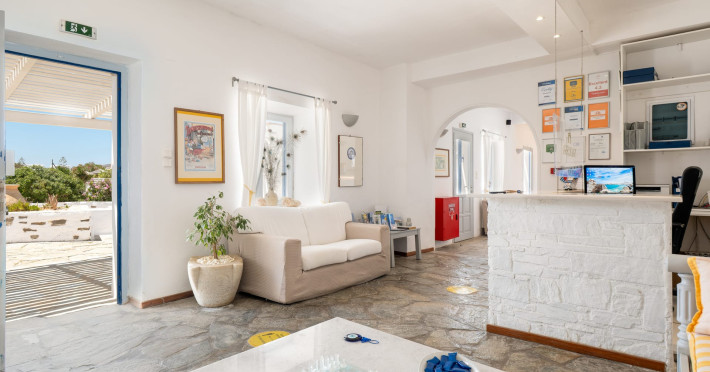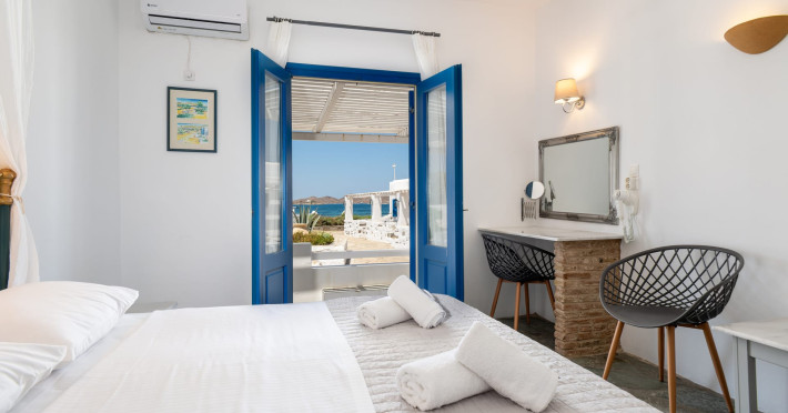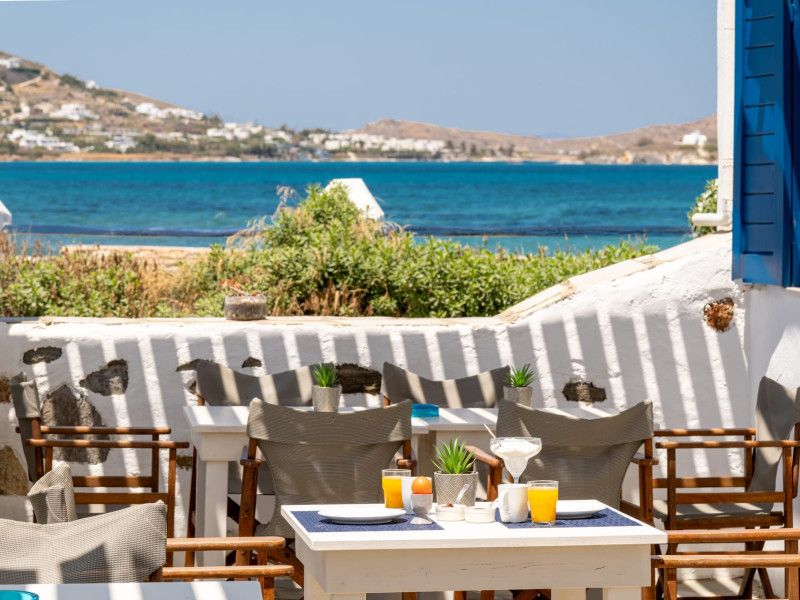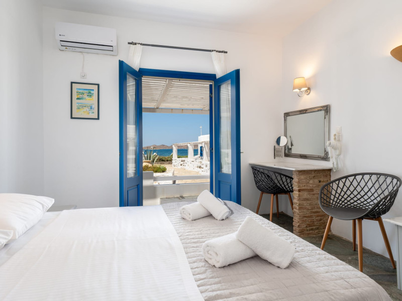 Prime Location: Naoussa Hotel Paros is strategically located, facing the picturesque bay of Naoussa, just 10 meters from the beach. The convenience of being 5 meters away from the bus stop ensures quick and easy access to the vibrant center of Naoussa. Our hotel aims to offer you the best vacation possible, allowing you to make the most of the Greek summer.