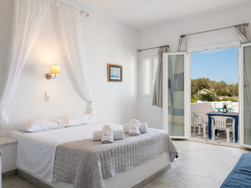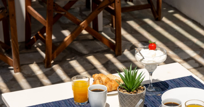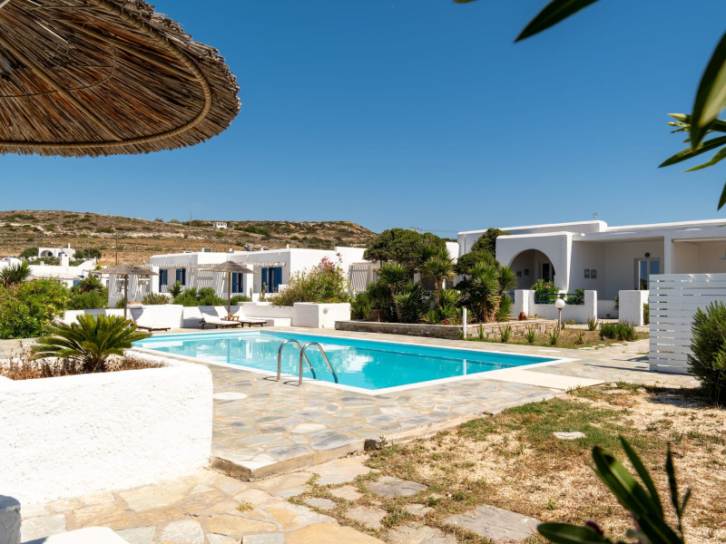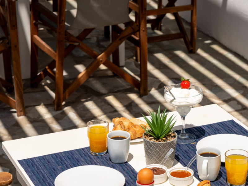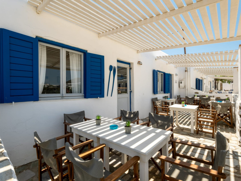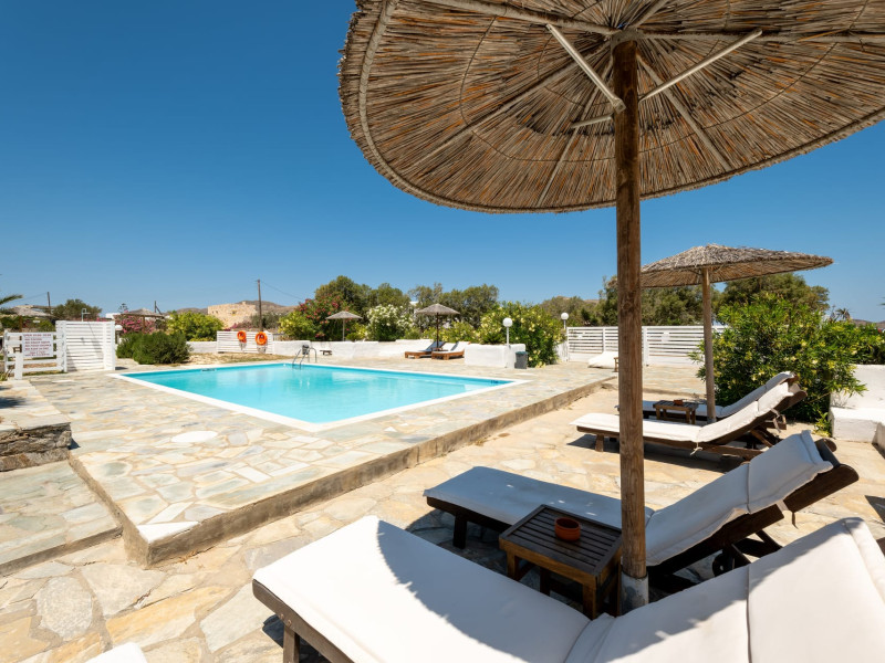 Accommodations: Immerse yourself in the comfort of our 10 apartments-studios, each equipped with the amenities of a villa, and 8 hotel rooms adorned with local materials. Our accommodations reflect the essence of the Cycladic style, providing a tranquil and authentic experience. Take a refreshing dip in our lovely pool or simply unwind on your private terrace, soaking in the serenity of the surroundings.
