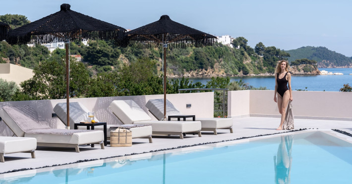 3* Hotel in Skiathos, located in Megali Ammos, 35 meters away from the beach.