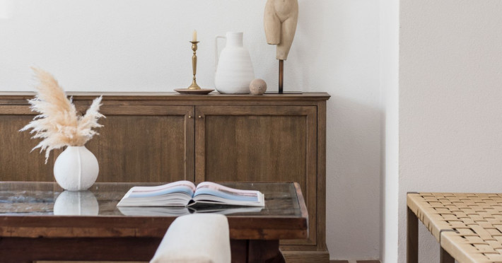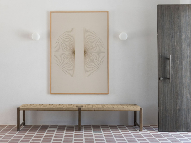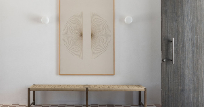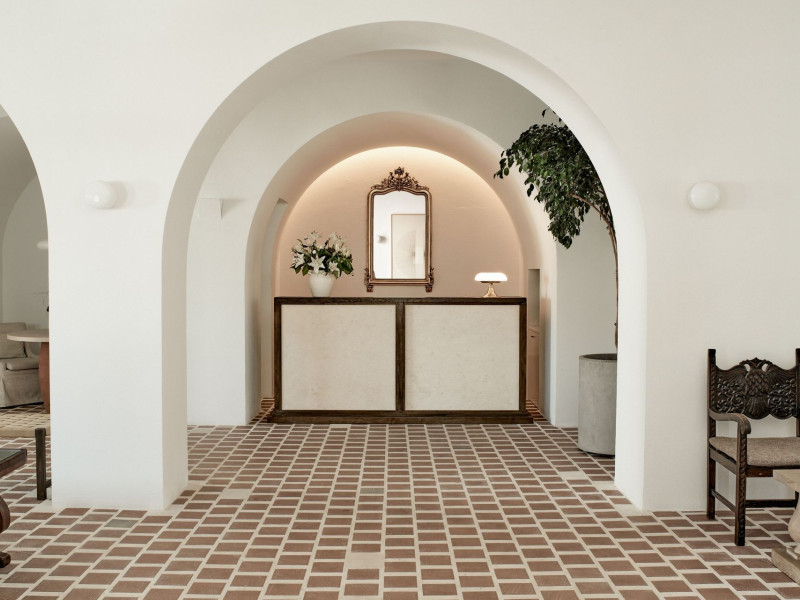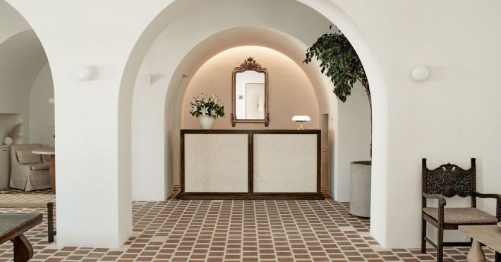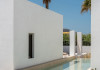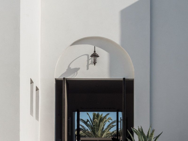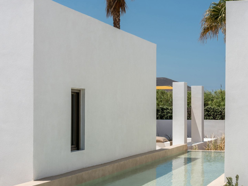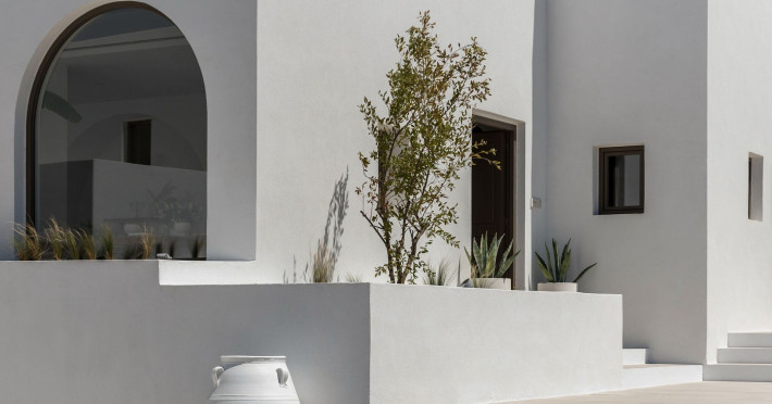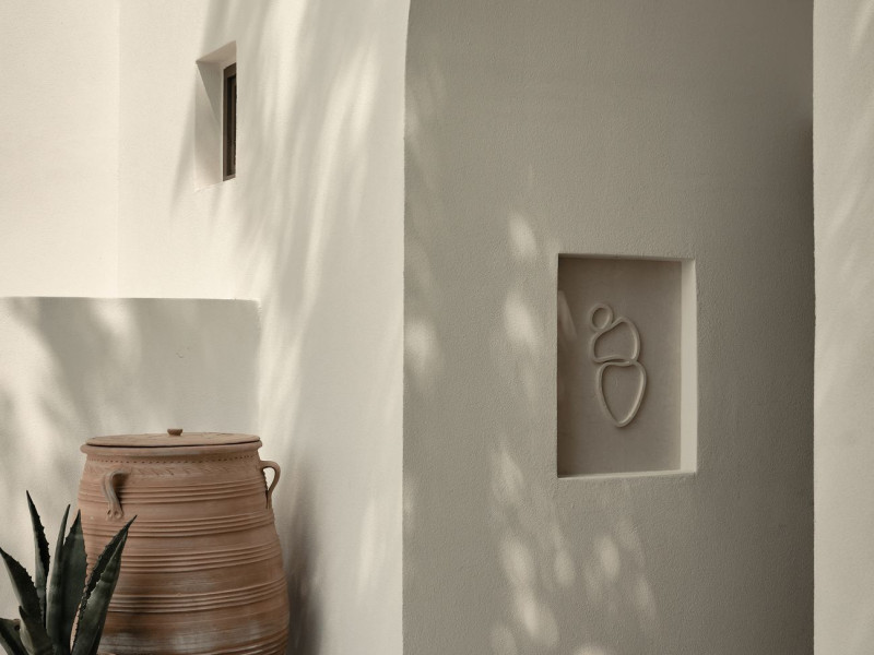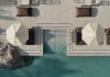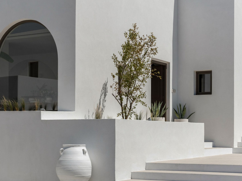 The property is characterized by the island’s distinctive architecture and its interiors are defined by a soothing, tonal color palette and natural materials. Contemporary Greek design pieces sit alongside objects d’art by leading European designers, while striking ceramics sourced from the Marrakech-based studio of LRNCE serve to inspire and provoke conversation. Distinctive structural features such as arches, concrete columns, and thick masonry are representative of traditional building techniques and help to create a sense of sanctuary, resulting in a space that is both cathartic and elemental.