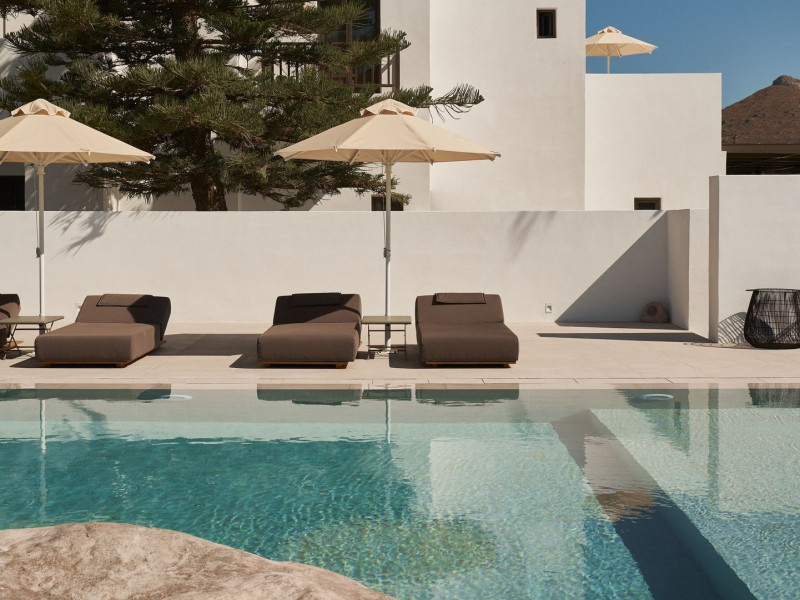 Parīlio, a Member of Design Hotels, the name of which is derived from ‘Paros’ and the Greek word for the sun ‘īlios’, is a 33-suite retreat characterized by Paros’ timeless simplicity surrounded by amber hued fields, araucaria trees and, of course, the impossibly blue waters of the Aegean Sea.