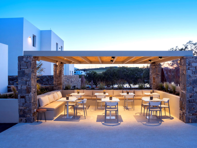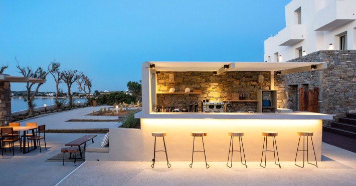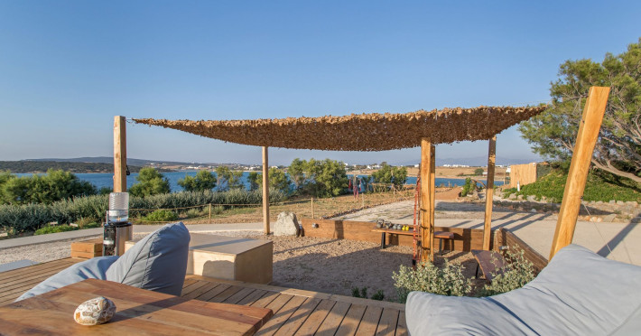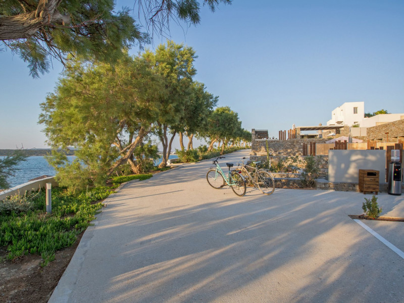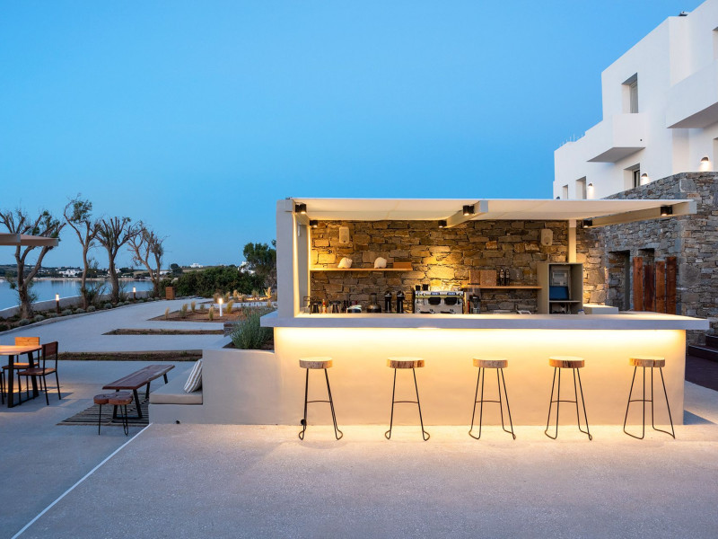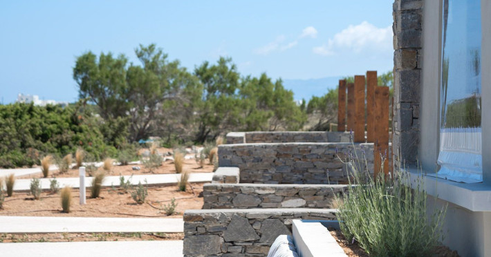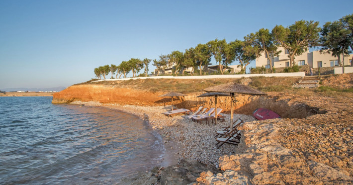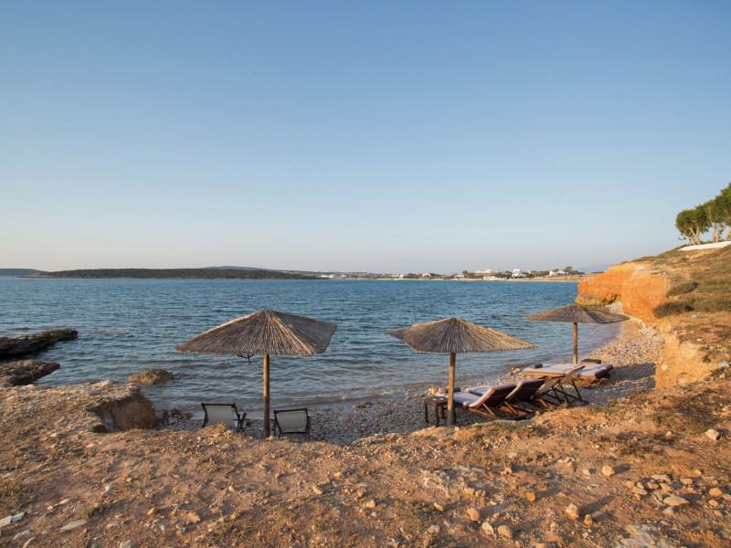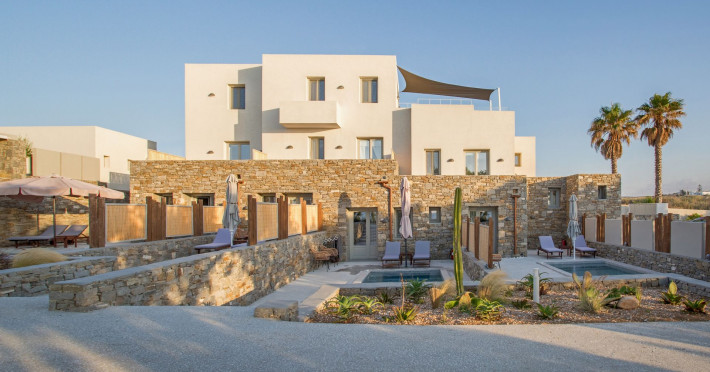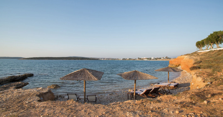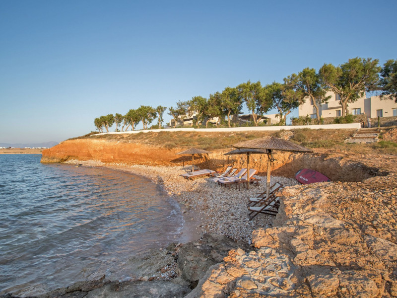 The beach front boutique hotel Paros Comfy Suites is located on a private peninsula of 6 acre by the sea, just 2km away from the town of Naoussa and the well-known organized beach of Santa Maria.