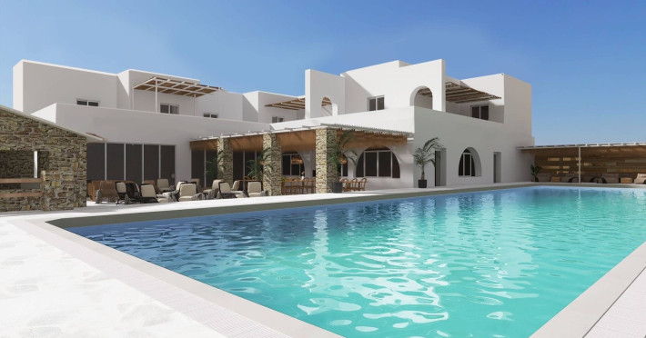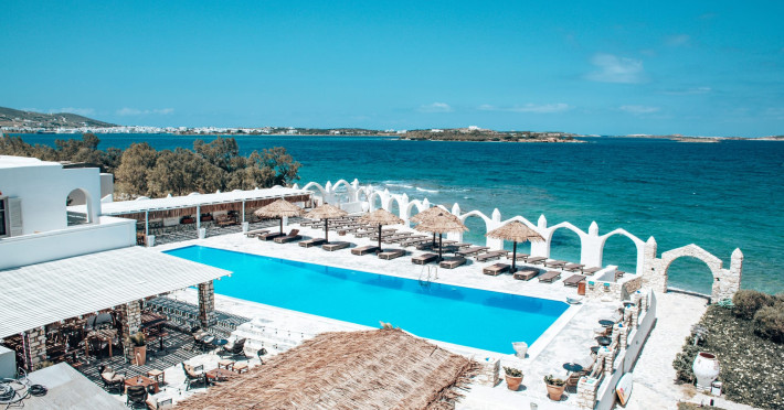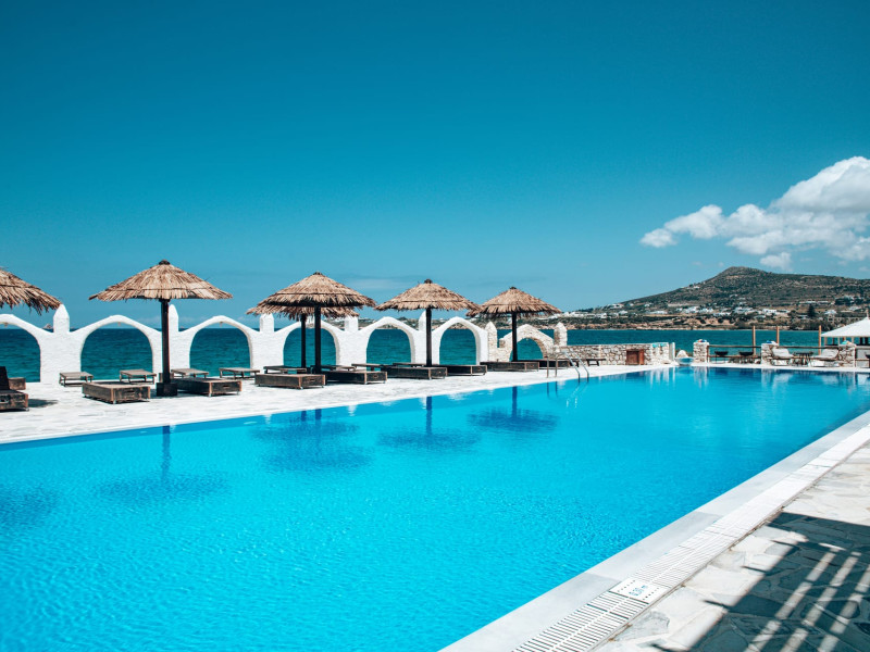 Paros Holiday Sun Hotel is a 2-star hotel located in Pounda, Paros, Greece. This modern hotel offers a range of accommodations, including rooms,and luxury suites, catering to both couples and families. Guests can enjoy a variety of amenities such as a swimming pool, on-site dining options, and easy access to the beach.