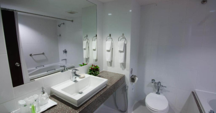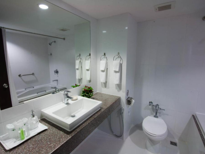 Camerele spatioase de la Patong Resort au minibar/frigider si balcon. Baia privată are cadă.