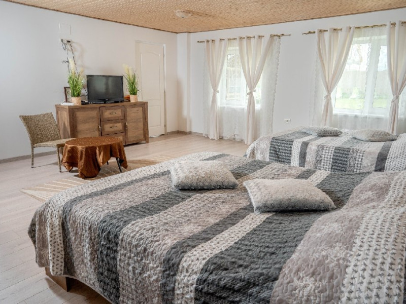 Pensiunea Casa Anastasia este o oaza de liniste si rafinament situata in inima Deltei Dunarii, pe malul drept al bratului Sfantul Gheorghe, la doar 34 km de municipiul Tulcea, in localitatea Murighiol. Accesibilitate si facilitati moderne Drumul judetean DJ 222C asigura accesul direct din Tulcea pana la parcarea pensiunii, care este supravegheata video pentru siguranta oaspetilor. Pentru un plus de confort, Casa Anastasia dispune de o statie de incarcare pentru masini electrice, accesibila gratuit tuturor oaspetilor. Casa Anastasia dispune de 17 spatii de cazare, restaurant, terase, piscina exterioara, locuri de sezlonguri, loc de joaca pentru copii, spatii pentru activitati recreative, sauna si ciubar, parcare proprie. Pentru iubitorii de aventura, Casa Anastasia ofera o flota diversificata de ambarcatiuni de agrement: - barci rapide pentru excursii exclusive. Casa Anastasia colaboreaza cu firmele autorizate din localitatea Murighiol pentru efectuarea excursiilor pe bratul Sfantu Gheorghe si Sulina, precum si in toate zonele adiacente celor doua brate. - trei caiace pentru o conexiune directa cu natura. - barci pentru pescuit sportiv la rapitor, conduse de ghizi experimentati. Casa Anastasia are un restaurant cu o capacitate de 60 de persoane, terasa acoperita cu 50 de locuri, terasa in aer liber, unde bucatele pescaresti si preparatele romanesti traditionale sunt acompaniate de privelisti pitoresti ale gradinii amenajate Bucataria este deservita de o echipa de profesionisti, se concentreaza pe preparate specifice Deltei, punand in valoare gustul autentic al pestelui proaspat. Cazarea se realizeaza doar in regim de demipensiune, mic dejun si cina, meniu prestabilit. Spatiile de cazare au o capacitate totala de 39 de persoane, care poate fi extinsa prin adaugarea a 7 paturi suplimentare. Spatiile sunt grupate in trei unitati distincte, ce combina arhitectura traditionala a Deltei cu standardele moderne de confort. Fiecare camera este dotata cu baie proprie, aer conditionat, TV cu receptie prin cablu si acces la internet, disponibil intregii proprietati, inclusiv in gradina si pe terase. Camerele duble dispun de pat matrimonial sau paturi twin. Camerele cvadruple sunt clasificate la 3 stele si dispun de doua paturi matrimoniale.