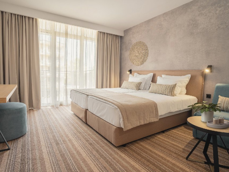 TUI SUNEO PERLA HOTEL 4*, SUNNY BEACH - Adults Only +16 ani ! Hotelul Perla este situata in partea de nord a statiunii Sunny Beach, la 250 de metri de plaja si la 300 de metri de centrul statiunii. Plaja: cu nisip, la 250 de metri de hotel. Fundul marii este plat cu acces lin. Bucurati-va de cea mai frumoasa si curata plaja de pe coasta bulgara a Marii Negre, castigatoare a premiului Blue Flag. Cazare: Ultima renovare in 2022. Hotelul dispune de 2 lifturi, un total de 130 de camere duble, 7 garsoniere si 11 apartamente, dintre care unul VIP. Camerele se disting prin stil elegant, confort si functionalitate. Camerele sunt dotate cu aer conditionat, confortabile si confortabile, dotate cu telefon, TV, mini-bar. Fiecare camera are balcon sau balcon francez. Oaspetii hotelului pot folosi seif la receptie, parcare cu plata, WI-FI gratuit, fitness. O sala de conferinte cu o capacitate de 50 de locuri, dotata cu echipament de conferinta si acces la Internet, potrivita pentru seminarii, intalniri de afaceri, evenimente de companie. DBL 2+0: Suprafata aproximativa 22,5 metri patrati. Camerele au doua paturi de o persoana, aer conditionat, TV, telefon, minibar, accesorii de toaleta, uscator de par si balcon alaturat. Acces gratuit la WI-FI. Capacitatea maxima este de 2 adulti. DBL 2+1 DELUXE: Suprafata aproximativa 24 mp. Camerele au doua paturi de o persoana, canapea extensibila, aer conditionat, TV, telefon, minibar, accesorii de toaleta, uscator de par si balcon alaturat. Acces gratuit la WI-FI. Capacitatea maxima este de 3 adulti. STUDIO 2+1: Suprafata aproximativa 27 mp. Camerele au doua paturi de o persoana, canapea extensibila, aer conditionat, TV, telefon, minibar, accesorii de toaleta, uscator de par si balcon alaturat. Acces gratuit la WI-FI. Capacitatea maxima este de 3 adulti. 1-BR APP 2+1: Suprafata aproximativa 53 de metri patrati. Consta dintr-un dormitor separat, living cu canapea extensibila, aer conditionat, TV, telefon, frigider, accesorii de toaleta, uscator de par si balcon alaturat. Unele unitati au si o chicineta utilata. Acces gratuit la WI-FI. Capacitatea maxima este de 3 adulti. Animalele de companie nu sunt permise la hotel. Hotelul dispune de o camera pentru persoane cu dizabilitati fizice, situata la etajul 1 langa lift. Exista si o rampa de intrare. Despre hotel: Restaurantul Hotelului Perla, cu o capacitate de 100 de locuri. Complexul ofera, de asemenea, confortul unui lobby bar, bar la piscina, sala de conferinte cu o capacitate de pana la 50 de persoane, o piscina in aer liber, un salon de masaj, un lift. Parcare: nepazita, cu plata (10 EUR pe zi), in functie de disponibilitate. Hotelul isi rezerva dreptul de a modifica pretul parcarii in orice moment. ALL INCLUSIVE al Hotelului PERLA**** pentru sezonul de vara 2025 INCLUDE: * Check-in dupa ora 15:00. *Check-out inainte de - ora 12:00. *All inclusive incepe cu pranzul din ziua sosirii si se termina cu micul dejun in ziua plecarii.
