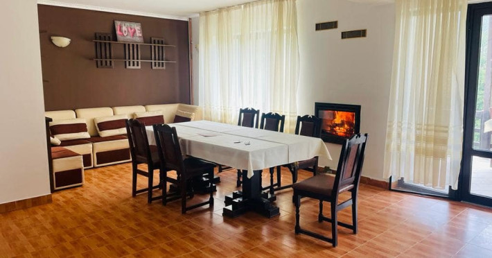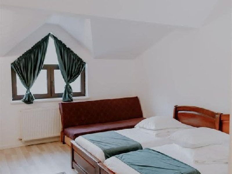 DOTARI SI SERVICII:Complexul se afla la o distanta de 1 km de partia de schi si la 3 km de centrul statiunii. Este format dintr-o pensiune clasificata la 3 margarete, cu restaurant propriu, sala de conferinta cu o capacitate de 70 persoane, si o vila, de asemenea cotata cu 3 margarete. Intregul complex a beneficiat de renovari complete la inceputul anului 2016. Puteti sa va relaxati si delecta in aer liber la gratarul din curte, special amenajat. Locatia ofera si un ciubar contra cost. Check out: pana la 11:00.