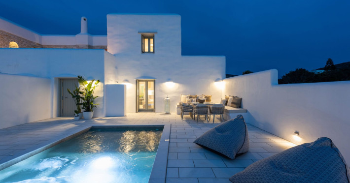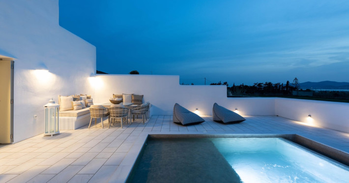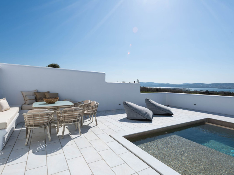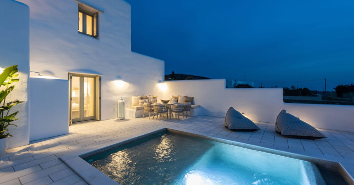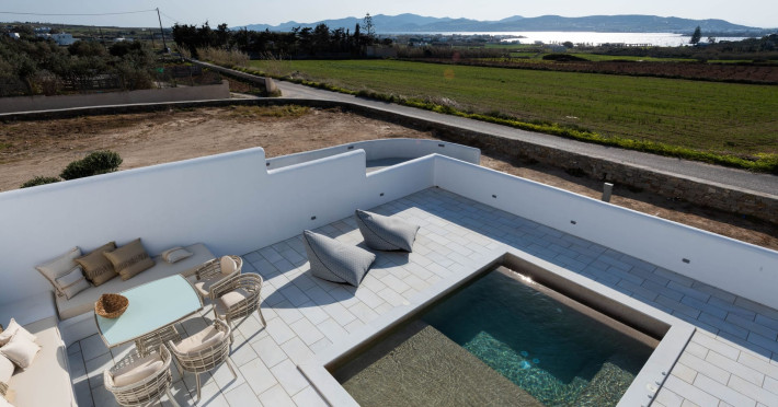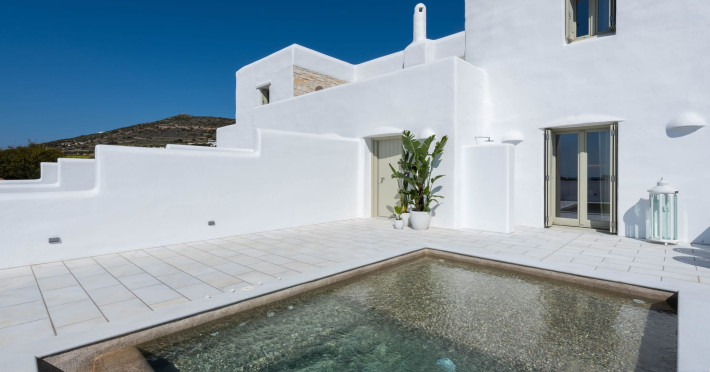 Sersi Paros is a complex of villas and suites at the southwest point of Paros in the beautiful region of Agia Eirini, with a view of Antiparos and an ideal spot for the magical sunset. Based on the elements of nature and earth tones we create a perfect place for relaxing and resting, ready to welcome each one of you and fill it together with summer memories. Consisting of ten residences it is capable to accommodate people with different wills. There are options for all types of rooms, some of them have a private pool. At a distance of 2 minutes from the ferry boat to Antiparos,7 minutes from Parikia and 15 minutes from Naousa, is in the perfect spot for easy movement. It will be our pleasure to visit us and trust your summer holidays with us.