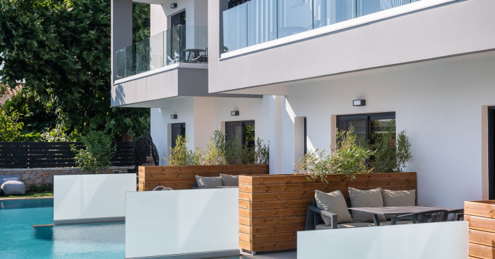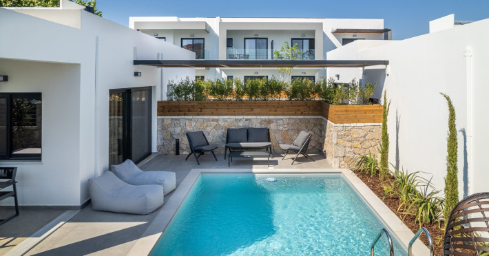 Fully equipped homes with luxury hotel services, designed to provide a customized stay experience, await you at SEZIAN Boutique Homes & Villas. All the Houses, Villas, and Maisonettes have spacious interiors, smart cuisines, and outdoor dining spaces. Some of them feature a private pool, either in secluded yards or within the iconic Lemon Garden, which is the landmark of the property, while the others share a long swimming pool.