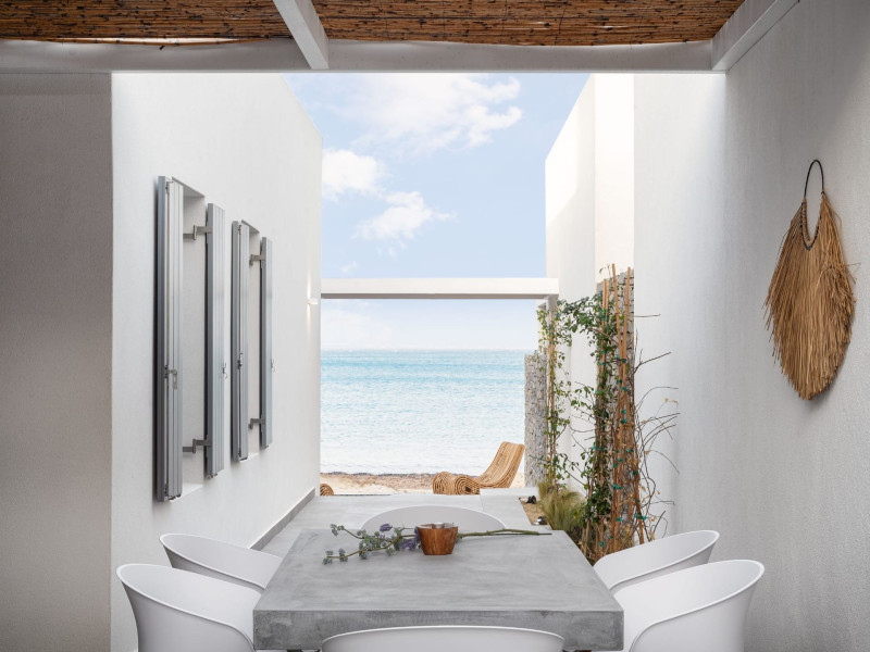 Outside, take a moment to revive with a dip in the swimming pool or sunbathe all day long – or if you prefer, dip your toes in the sand and have an afternoon swim in the sea, which is literally at your doorstep. Appreciate private moments and admire the majestic sea view from the villa’s sun loungers. Stay under the shaded pergola during the afternoon and enjoy alfresco barbeque dinners in the dining area under the moonlight.