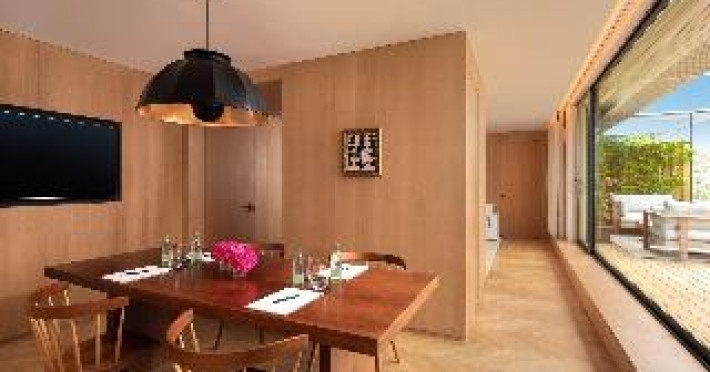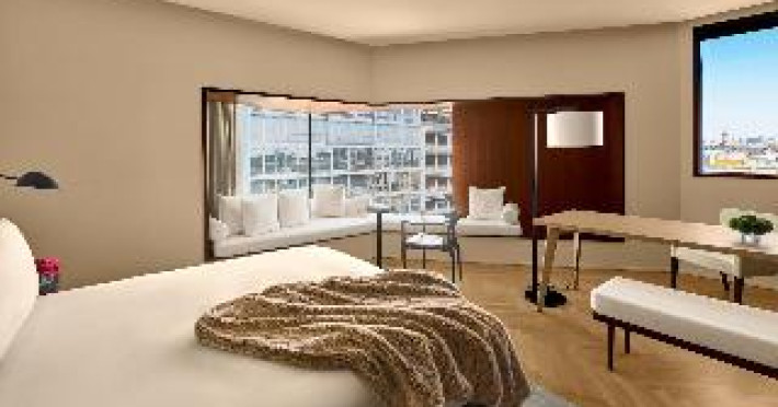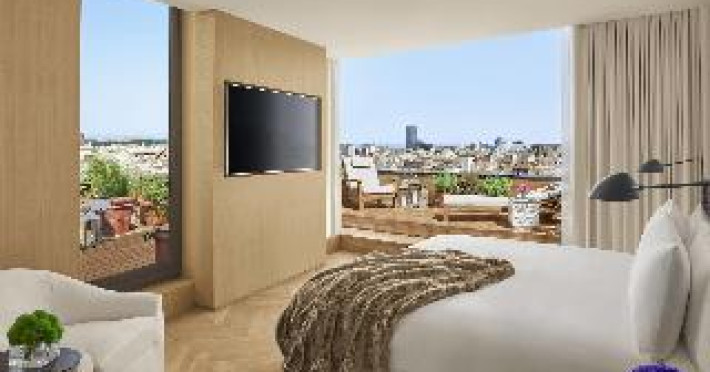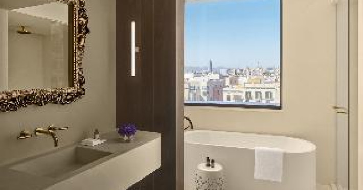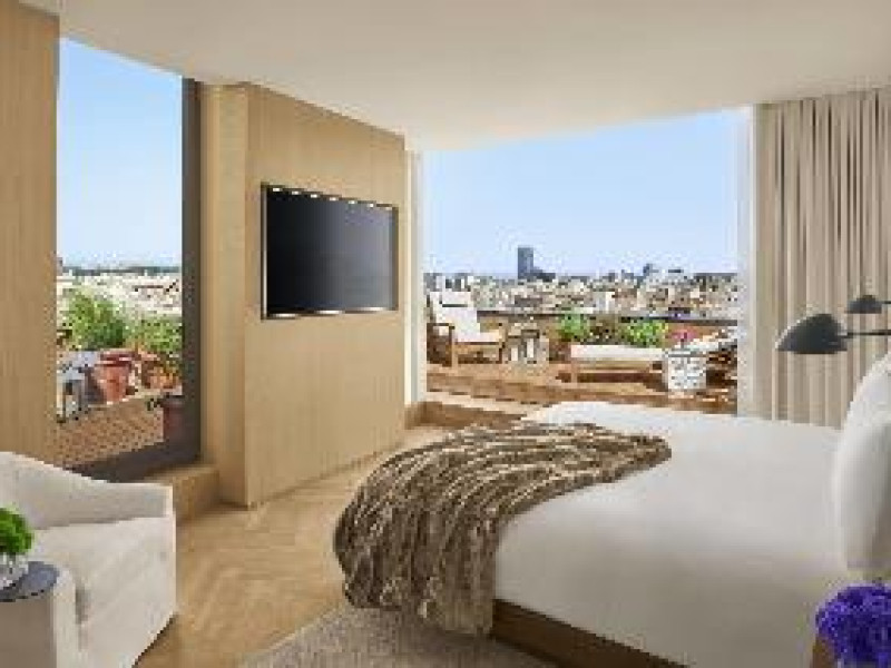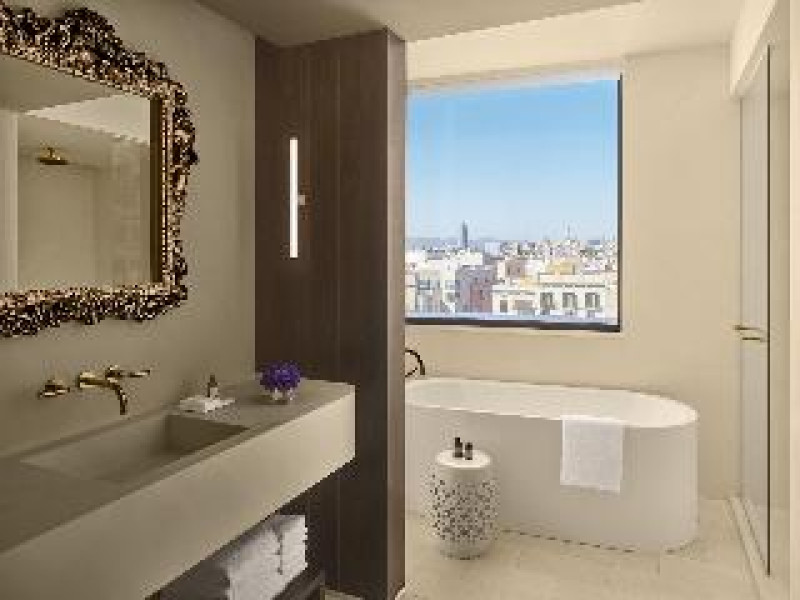 With a stay at The Barcelona EDITION, you'll be centrally located in Barcelona, steps from Santa Caterina Market and within a 5-minute walk of Palau de la Música Catalana. This luxury hotel is 0. 1 mi (0. 2 km) from Barcelona Cathedral and 1 mi (1. 7 km) from Picasso Museum. . Enjoy a range of recreational amenities, including an outdoor pool, a 24-hour fitness center, and bicycles to rent. Additional amenities at this Mediterranean hotel include complimentary wireless internet access, concierge services, and wedding services. . Make yourself at home in one of the 100 individually decorated guestrooms, featuring minibars and espresso makers. Your pillowtop bed comes with down comforters and Frette Italian sheets. Complimentary wireless internet access is available to keep you connected. Bathrooms have designer toiletries and hair dryers. . Enjoy local cuisine at Veraz, one of the hotel's 2 restaurants, or stay in and take advantage of the 24-hour room service. Relax with a refreshing drink from the poolside bar or one of the 2 bars/lounges. Cooked-to-order breakfasts are available daily from 7:30 AM to 11:00 AM for a fee. . Featured amenities include a business center, express check-out, and dry cleaning/laundry services. This hotel has 4 meeting rooms available for events. A roundtrip airport shuttle is provided for a surcharge (available 24 hours), and self parking (subject to charges) is available onsite. . Distances are displayed to the nearest 0. 1 mile and kilometer.