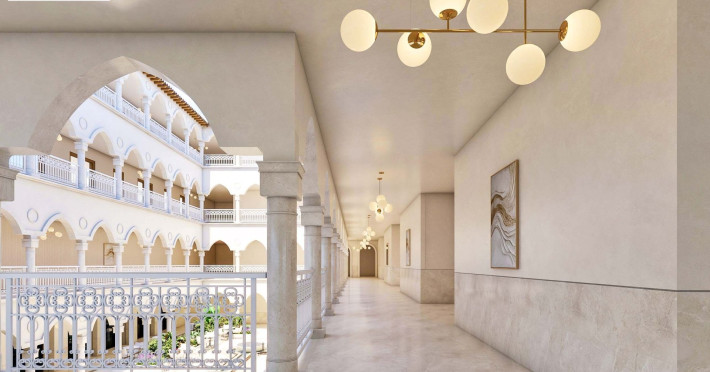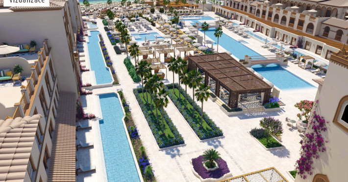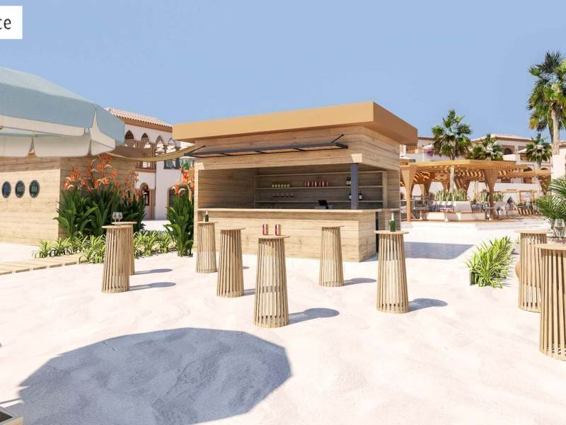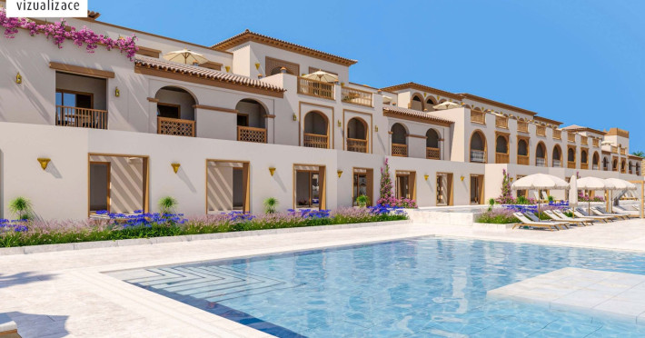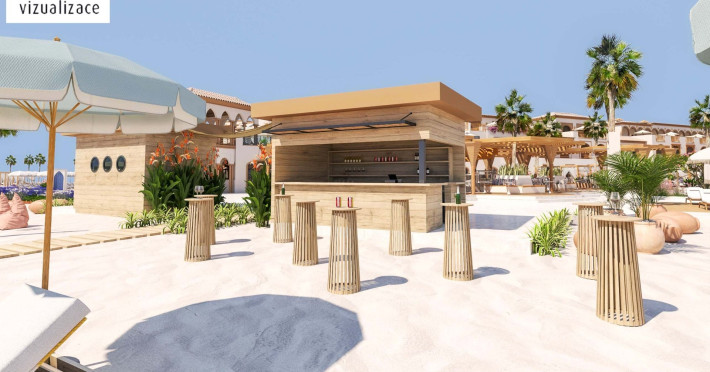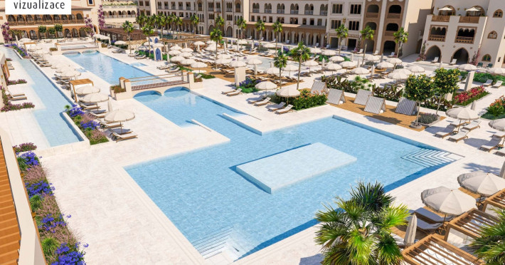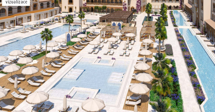 Suite, Haven, Swim-Up: acces direct la piscina comuna, mai spatioasa, dormitor si living separate de un perete cu un pasaj fara usa, aprox. 62 m²