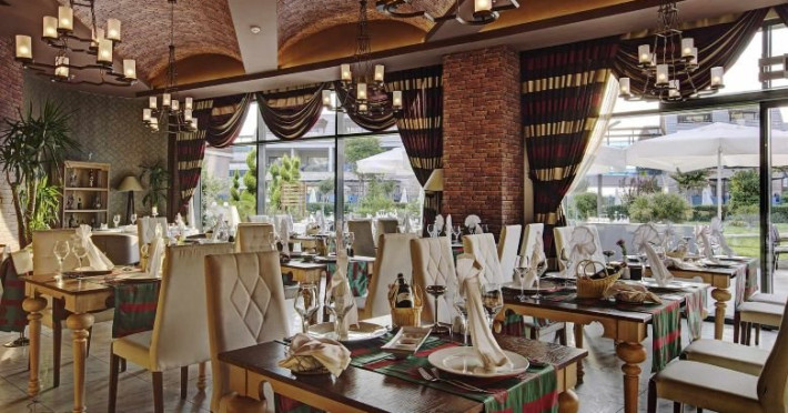 Hotelul pune la dispozitia turistilor urmatoarele facilitati: 1 restaurant principal Magico pentru servirea meselor principale, 6 restaurante a la carte cu specific turcesc , international, pescaresc, Italian, japonez, stil Streetfood , snack restaurante, 1 patiserie, baruri la piscina, disco bar, 7 piscine (piscine principal),piscina relax, 2 piscine villa, piscina pentru copii,Aqua Pool, piscina interioara, 6 tobogane.