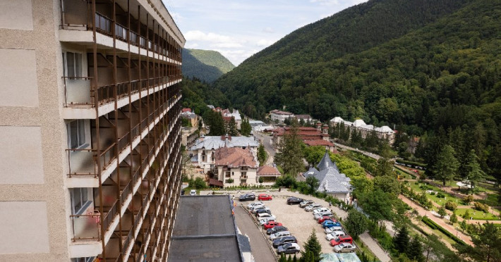 Hotelul este localizat in vestita statiune Slanic Moldova, cunoscuta si ca Perla Moldovei, recunoscuta documentar de aproximativ 254 de ani. Cazarea cu animale de companie se face in limita spatiilor disponibile, respectiv 2 camere, cu rezervare in prealabil la receptie. Taxa locala se achita la receptie si este 8 lei/zi/turist. Ziua de cazare incepe la ora 16:00 si se termina la ora 12:00. Hotelul dispune de 450 locuri de cazare, restaurant, bar de zi, terasa, parcare proprie, gratuita pentru oaspeti, cu o capacitate de 40 de locuri, 2 sali de conferinta, baza de tratament, acces gratuit la internet wireless in holul hotelului, servicii de spalatorie/curatatorie - contra cost. Baza de tratament se afla in incinta hotelului, are o suprafata de 452mp si poate asigura zilnic pina 1.080 de proceduri medicale, efectuate de catre personal medical. Principalele afecLLiuni tratate sunt cele ale aparatului digestiv, hepato-biliare, aparatului locomotor, cailor respiratorii, metabolice si de nutritie, reumatismale, circulatorii si de recuperare. Documente necesare pentru efectuarea tratamentului: bilet de trimitere de la medicul de famile / medicul specialist, card de sanatate activat sau adeverinta de la Casa de Sanatate Judeteana, adeverinta de salariat / cupon de pensie / certificat de nastere in cazul copiilor. Zilele in care se efectueaza proceduri in baza de tratament sunt de Luni pana Vineri.