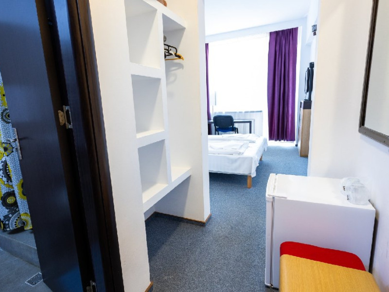 Unitatea dispune de 450 de locuri repartizate in 195 de camere, 9 semiapartamente si 8 apartamente. Camerele au 2 paturi individuale, televizor, telefon, grup sanitar propriu si racitor. Apartamentele sunt formate din antreu, living, dormitor si baie. Au pat matrimonial in dormitor si canapea extensibila in living. Sunt dotate cu 2 televizoare. Camerele duble confort standard nu au balcon. Camerele duble confort superior au balcon.