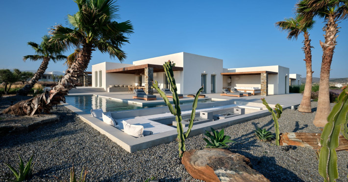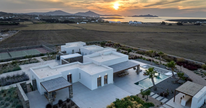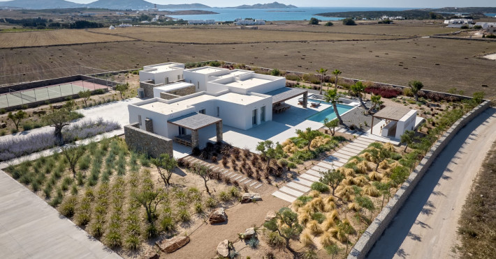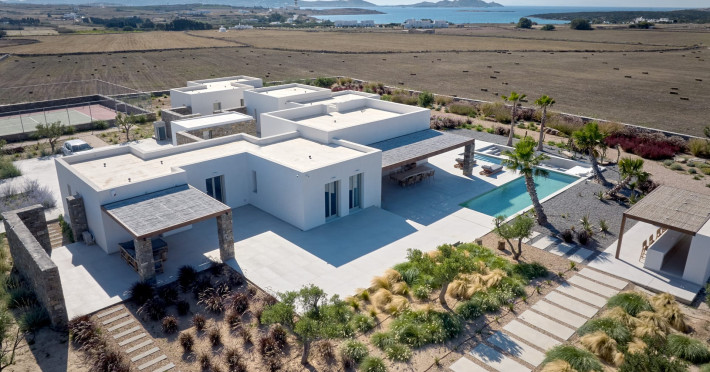 Villa Rojo is a brand-new luxury 6-bedroom villa, overlooking the Aegean Sea and Santa Maria beach. It boasts a fine fusion of Greek architectural integrity and modern finishes with all the luxuries of a five-star hotel. Located Just a 6-minute drive from the cosmopolitan town of Naousa, this is just the right property to enjoy a lavish, private stay on fabulous Paros.