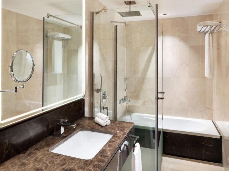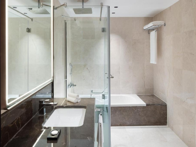 Toate camerele moderne sunt mobilate cu televizoare LED cu canale prin satelit, aer condiționat individual, o zonă de relaxare, facilități gratuite pentru prepararea de ceai și cafea și un minibar. Băile au un duș mare și o cadă.