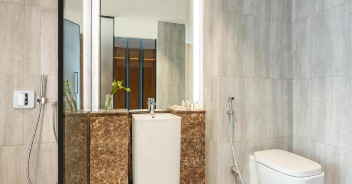 Camerele hotelului au aer condiționat, birou, apă, minibar, tv cu ecran plat, balcon și bideu. Toate camerele bij voco Monaco Dubai, an IHG Hotel, Adults Only, World Islands hebben beddengoed and handdoeken.