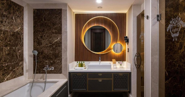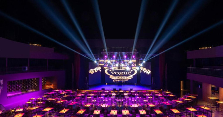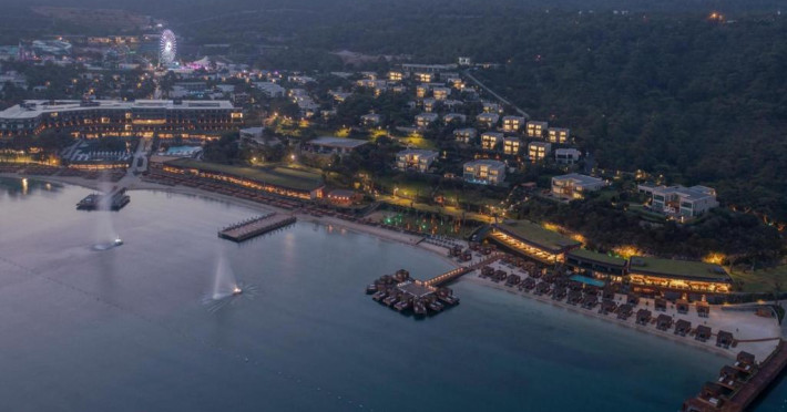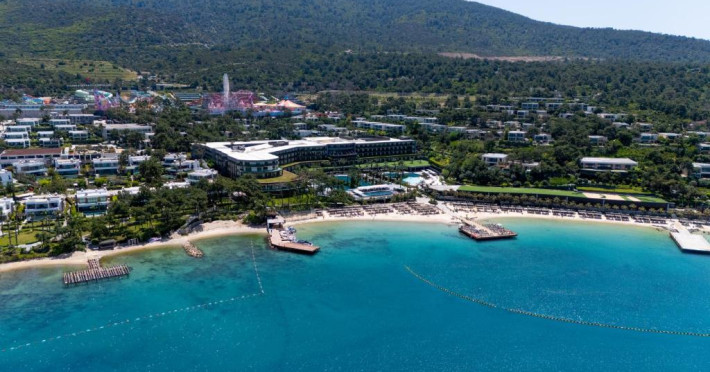 Situat pe malul mării, in Golful Torba, și inconjurat de pini, Vogue Hotel Supreme Bodrum are o suprafață totală de 40 ha și oferă piscine in aer liber cu 25 de tobogane de apă in zona Candyland, facilități spa, o groapă de nisip și un parc de distracții pentru copii. Această proprietate de 5 stele are 2 plaje cu o lungime totală de 750 de metri. Hotelul oferă servicii ultra all inclusive.
