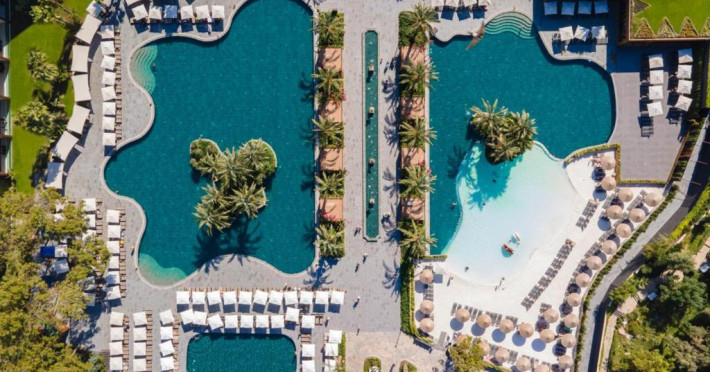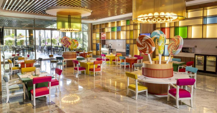 Restaurantul principal servește micul dejun, pranzul si cina in stil bufet. Cele 4 restaurante à la carte ale hotelului oferă mancăruri alese din bucătăria italiană, turcească și din Orientul Indepărtat, precum și fructe de mare. Proprietatea are patiserie, iar oaspeții pot savura o varietate de cocktailuri și sortimente de cafea la cele 11 baruri ale hotelului.