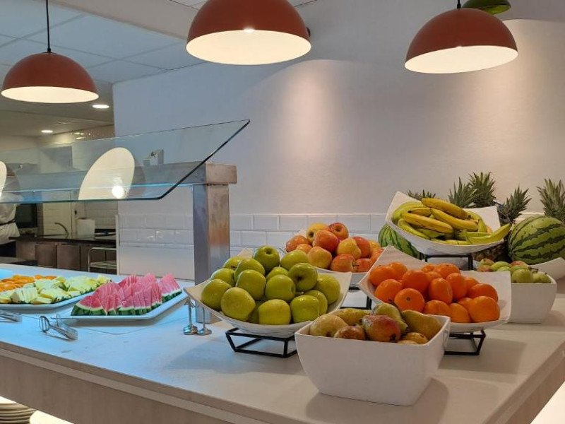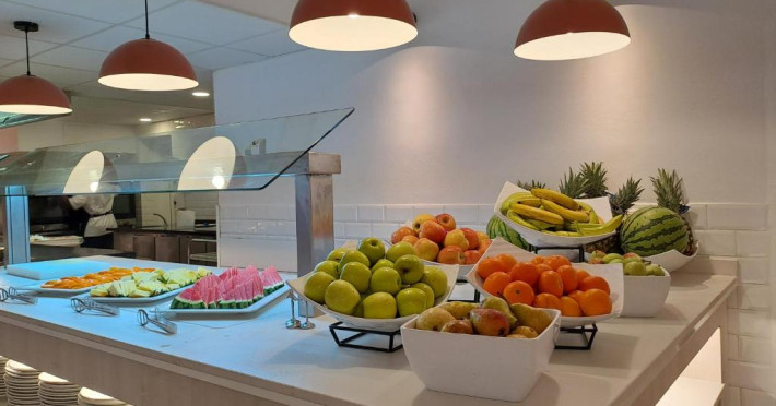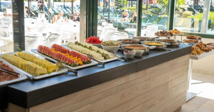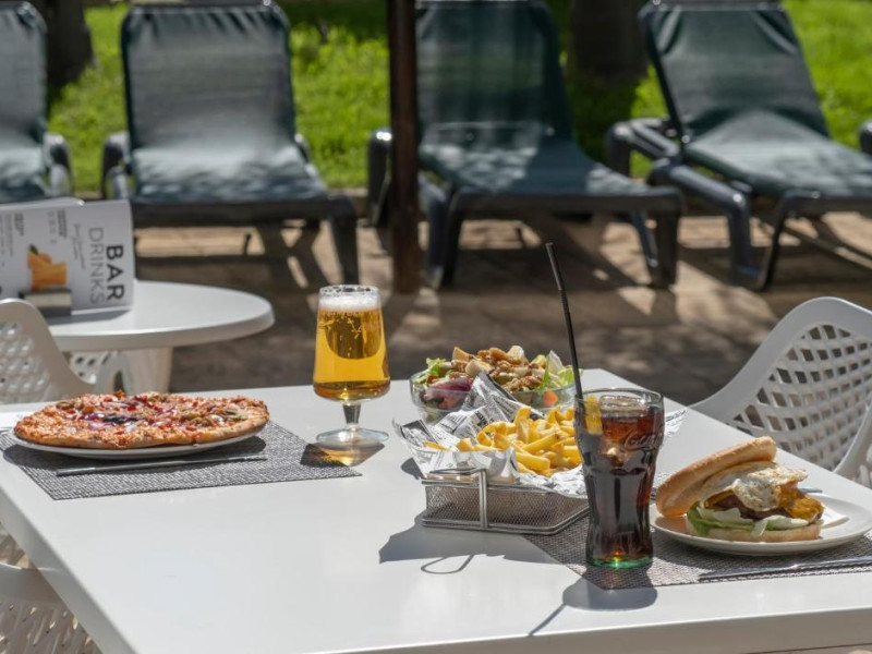 Camerele sunt luminoase și confortabile, toate avand balcon privat. Facilitățile pentru familii includ un mini-club pentru copii, program de animație și un teren de joacă. Restaurantul principal servește preparate in stil bufet, cu seri tematice și specialități mediteraneene.